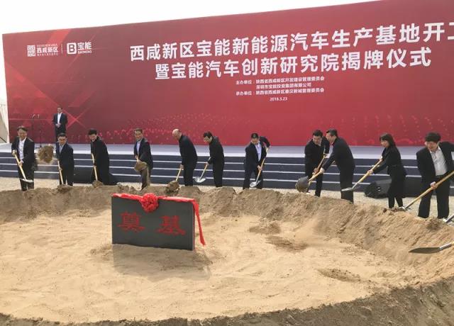 3月23日西咸新區(qū)寶能新能源汽車生產基地開工暨寶能汽車創(chuàng)新研究院揭牌儀式在陜西省西咸新區(qū)秦漢新城舉行。該項目總投資約400億元,規(guī)劃產能100萬輛(其中一期50萬輛)新能源汽車及配套項目,整車和零部件制造產值將超過千億元。這是寶能在新能源汽車產業(yè)的重大布局,也是西咸新區(qū)開工建設的千億級工業(yè)產業(yè)項目。