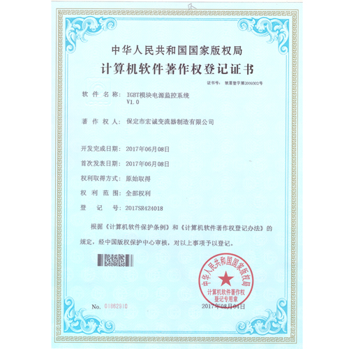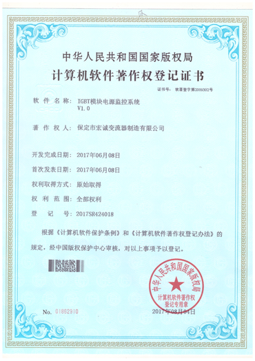 計算機軟件注冊權登記證書——IGBT模塊電源監(jiān)控系統(tǒng)V1.0