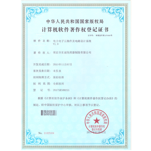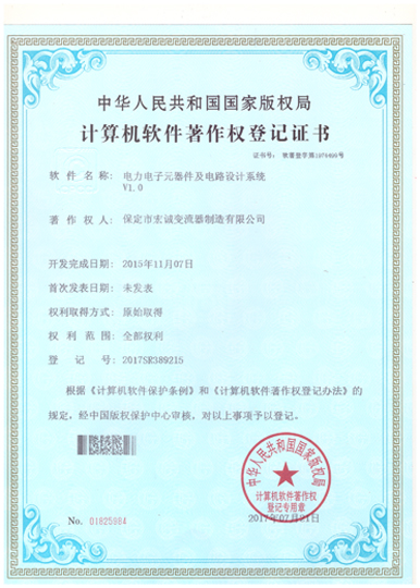 計算機軟件注冊權登記證書——電力電子元器件及電路設計系統(tǒng)V1.0
