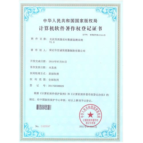 計算機軟件注冊權登記證書——光伏變流器實時數(shù)據(jù)檢測系統(tǒng)V1.0